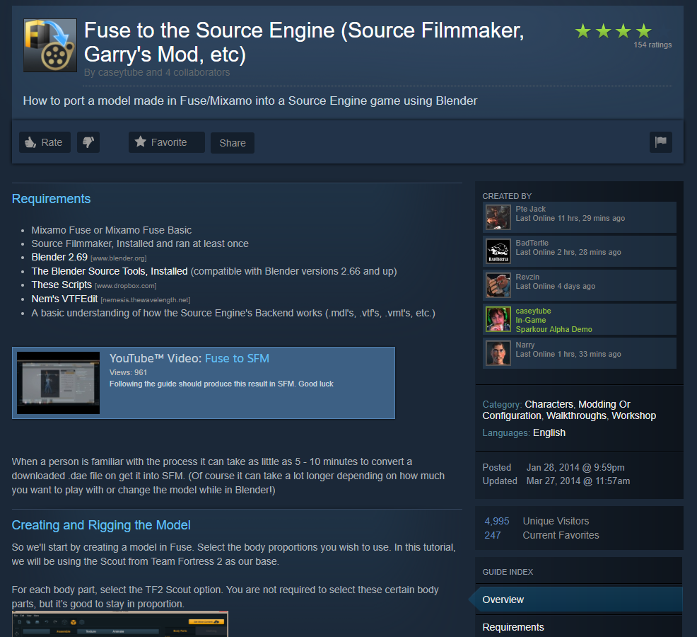 Contracted as part of a community brain-trust to help establish a workflow for bringing Mixamo’s Fuse assets to the Source Engine, which helped bring thousands of new customers to their platform.